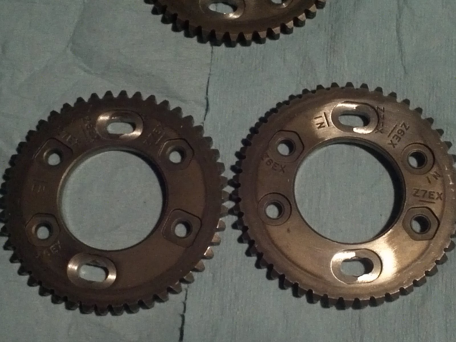 This one shows how much slotting was done to the intake cam gear. Once again, these gears came this way on a parts bike. They work just fine.