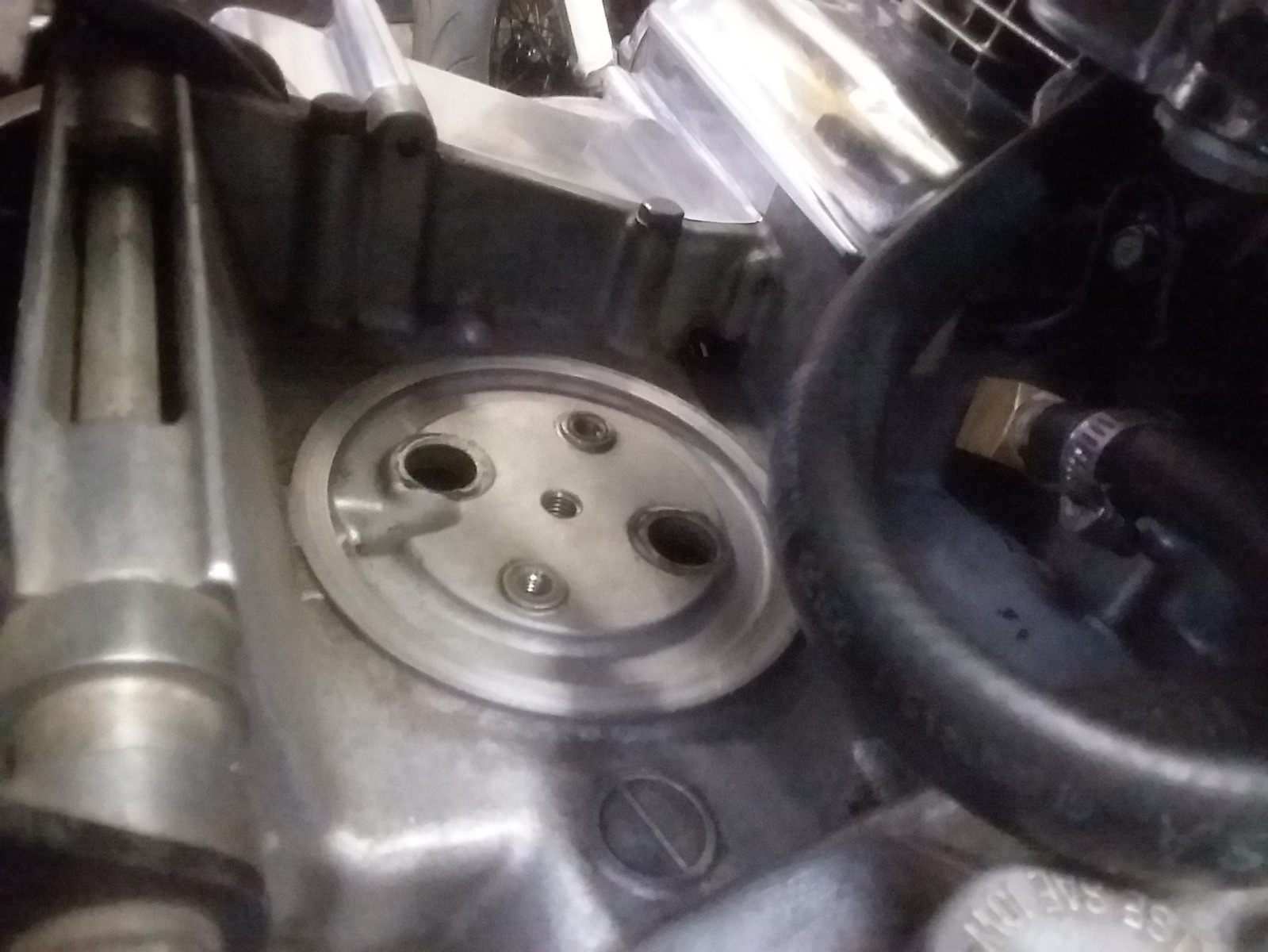 Then I pulled apart the crankcase breather. I saw nothing abnormal here. I could see a bit of transmission and it was well oiled.