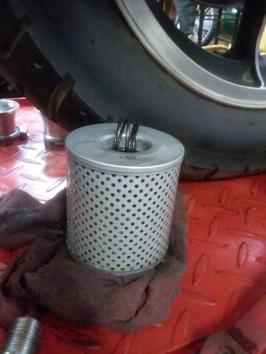 Then I pulled the oil filter. All was normal except the blown out oring...but is the filter bolt supposed to have a spring and check to act as a filter bypass? Like a honda? Well parts fiche does not show this and mine does not have anything.