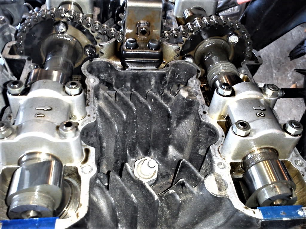 Now, when I bought this the seller had had the top end freshly done on it. But to me it was too noisy. Evidently the mechanic who did the work blew out the threads on two of the 4 cam cap bolts and tried to shortcut his way out the damage. The noise in the top was loudest right there. But that guy would have had to have been a member of this site to tap into others experience to avoid what happened, because you won't find this kinda chit in the book.
