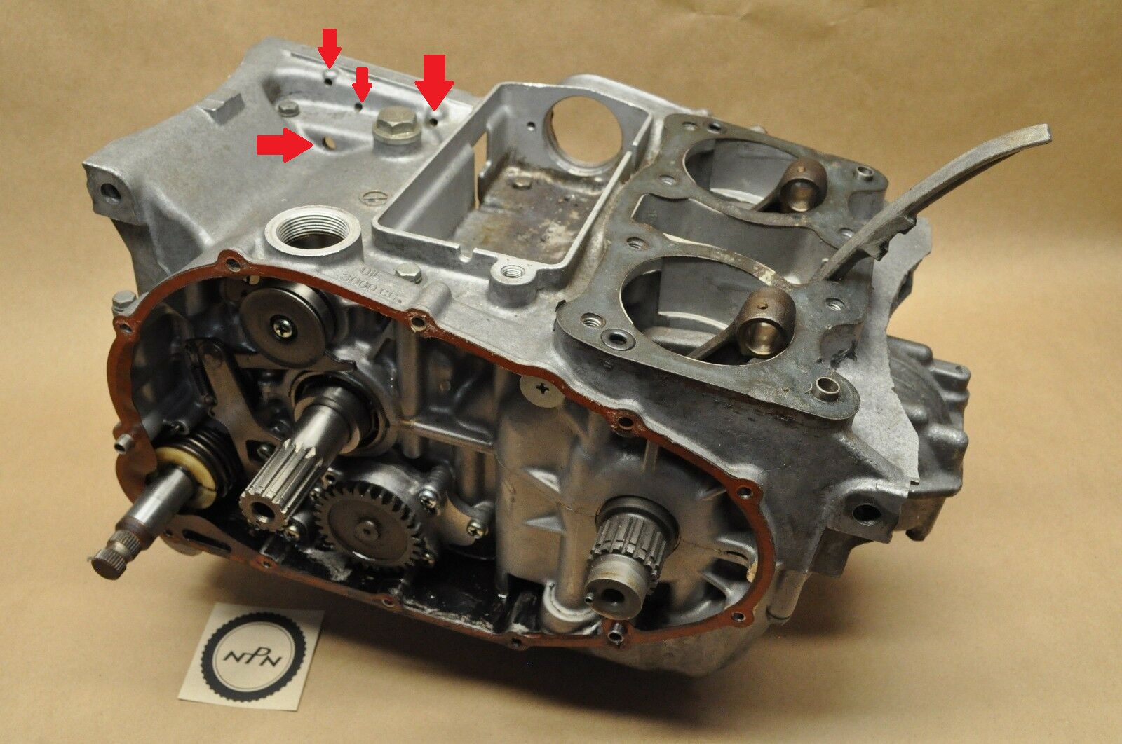 My big fours have the larger hole in a similar location. I’d say it’s to drain off water or fluids the would collect on the top of the transmission case. Not sure about the 3 smaller
