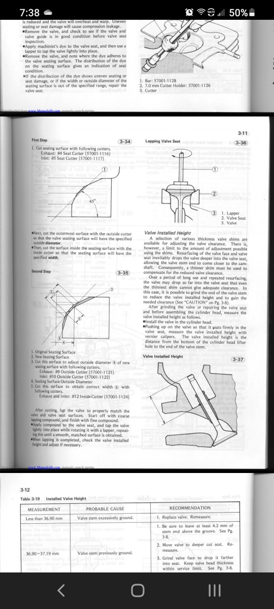 08 Apr 2021 19:06I'd follow the factory manual method; do the 45 first and then the top and bottom cut to narrow and center the contact patch.Zed1015, I've seen a couple threads where Larry had recommended hitting the 60 first to check for concentricity, just to know where you're at. Then wiping out the 45 completely with the 60, then putting in the 30 and then adding your 45 and adjusting from there just to avoid following a crooked seat, especially with new guides. This is pretty much the opposite of what i read in the fsm. What's your guys' opinion on how to go about it? I'm sure it could just be the difference between new seats with new guides and touching up old seats with the same guides but id love the input.