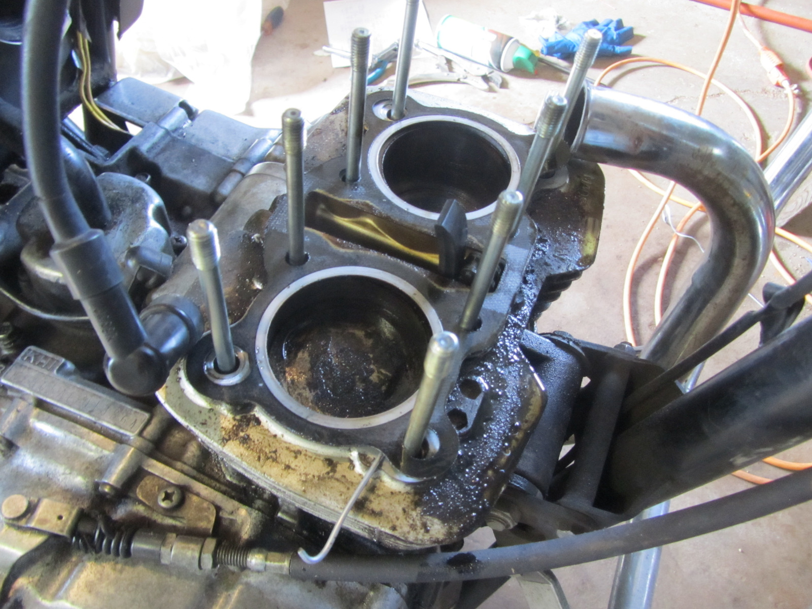 Got the head and block off, didn't break anything yet. The head gasket looks fine to me, although maybe the fact that it popped off looking practically brand new says something. The base gasket is gonna be a major PIA to clean off.