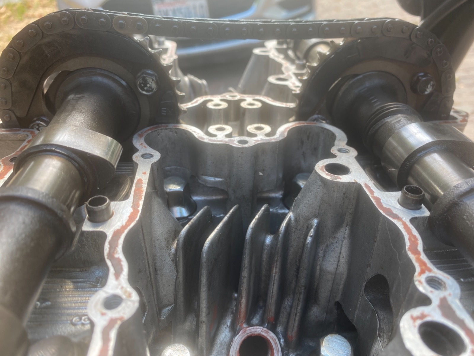 on my exhaust cam shaft I have a line with EX on the intake cam I don’t have an “IN” line as the manual supposes. So I’m having a little trouble. Could y’all take at the pictures and tell me what you think?