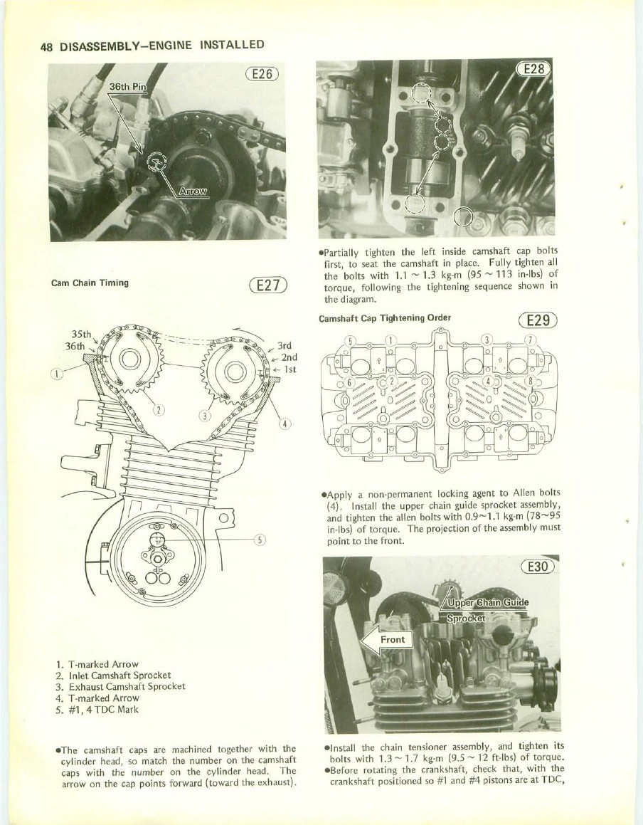 For the earlier style there should be arrows on the cam sprockets that are set to the top of the head on both cams and then a set number of chain links needs to be set between the cams. I have attached a page with a pic showing this. It is from a B1 manual, I do not currently have one for the 78 model years, but I am pretty sure it was the same for the 78 models.