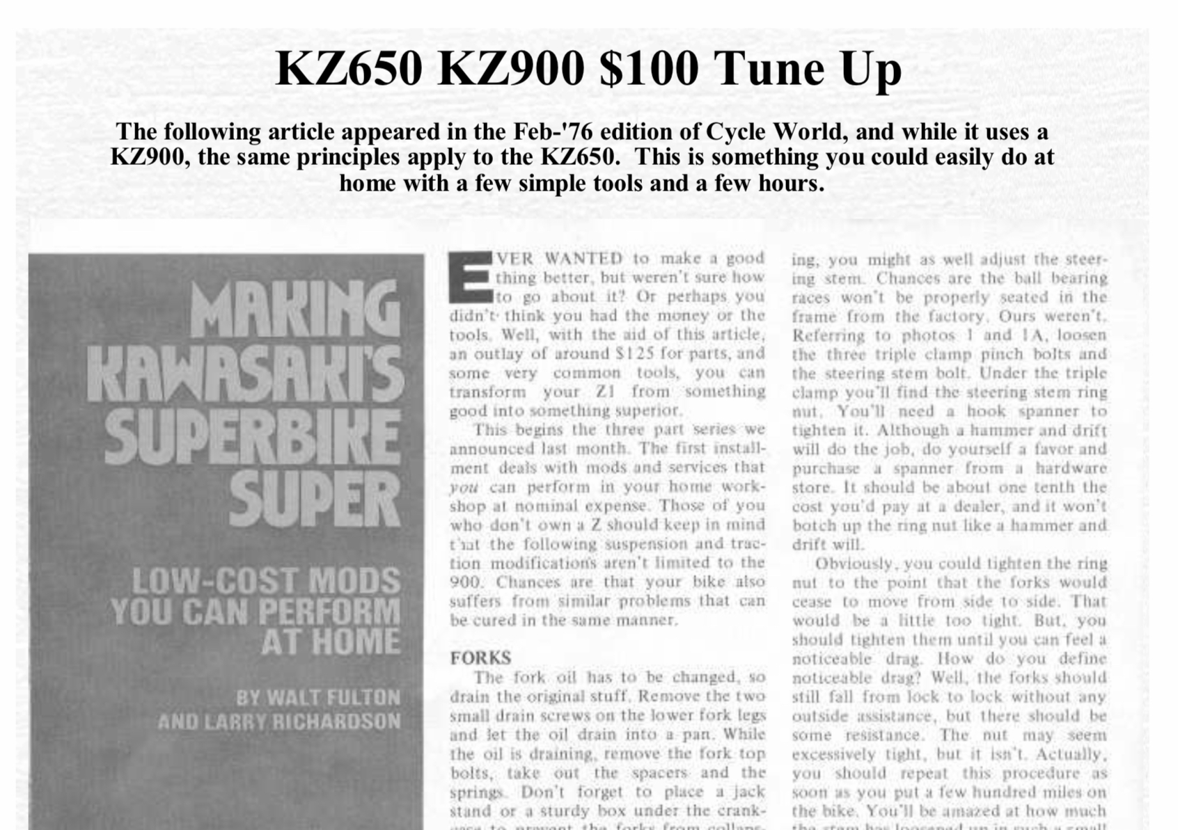 Because of the discussion with Robb2018 and his cam chain issues, reminded me I recently read an article in the file base. It’s a write up on getting top performance out of the Kz900. In the article it says to make sure you keep the cam cover bolts separate from the cam cap bolts. It mentions that although they are similar in looks the cover bolts are made of weaker material. I have heard of several guys snapping cam cap bolts within the torque spec. As anyone heard this and how would one confirm it. Also how would you separate them out of a pile. Here is the paragraph in the article.and a screen shot of the article title. Just thinking this could save us all headaches.
