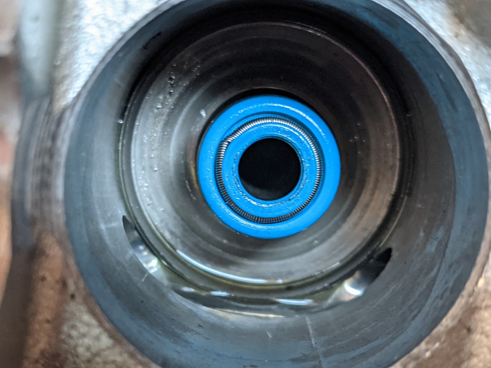 I bent a couple valve seal springs that wrap around the top opening when putting new ones in.
