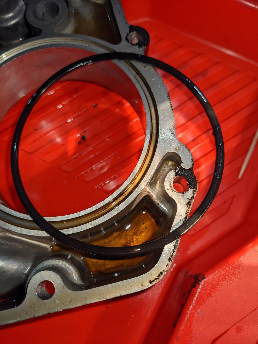 The 90mm O-ring that sits in the pan, around the oil filter hole, seems a bit worn – notice the fraying on the right side of the image. I’ve ordered replacements for all the O-rings and gaskets that I’ve had to remove. Could a poor O-ring be contributing to low pressure?