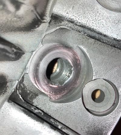 Yes, BOTH spark plugs turned all right; that little silver ring is what remains of the spark plug threads; on both sides! If you look closely you can see the remains of the spark plug tip in the cylinder. It appears I have some work ahead of me. Any ideas for getting those out? I had soaked them in PB Blaster for a week and tried to use heat before I attempted to turn them, but they broke faster than Betty White's hip. It didn't take much.