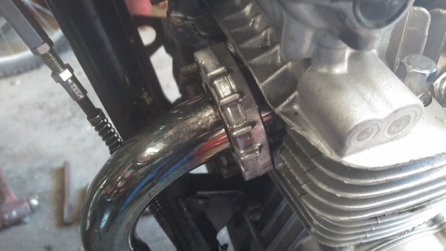 I'm trying to install the stock exhaust system on my 750....obviously something is not right with the parts i have on hand. Either the holders or the split keepers are wrong or shorter studs were installed in the head to fit the 4-1 header I removed. Can anyone identify the problem?