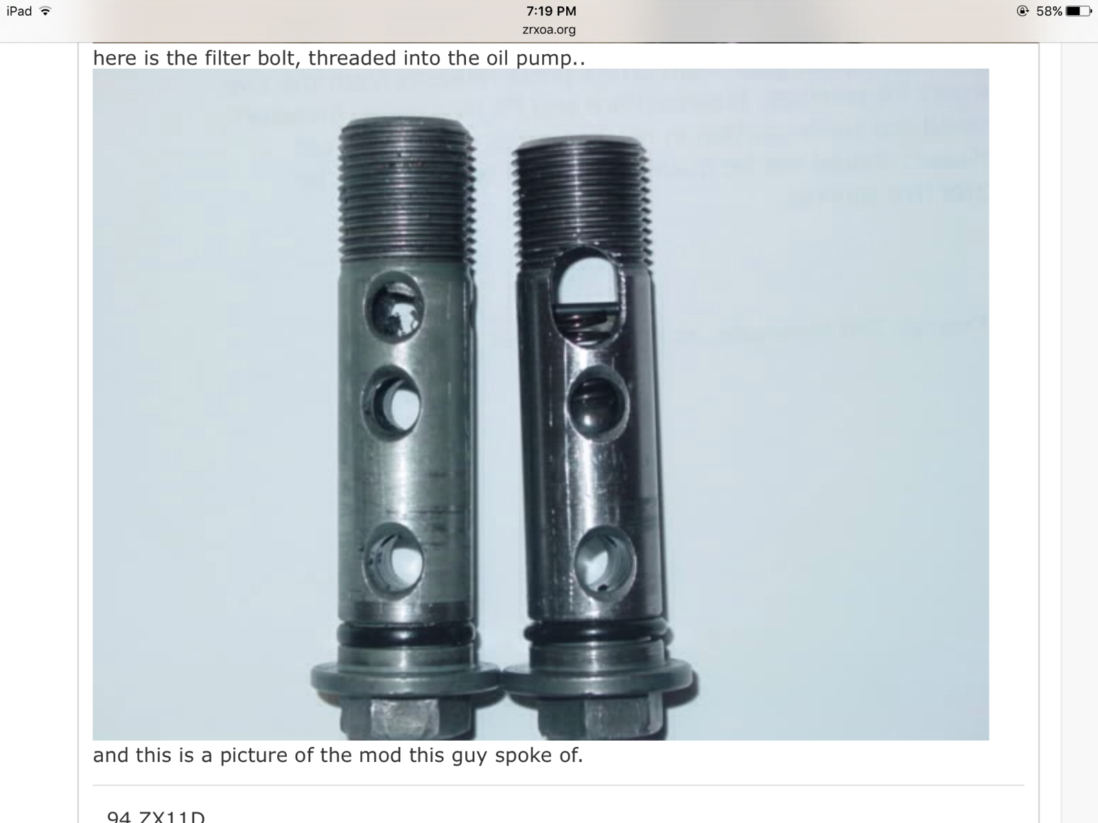 New Oil Filter Valve verses OEM (bolt that hold in oil filter) on '81 GPz 550