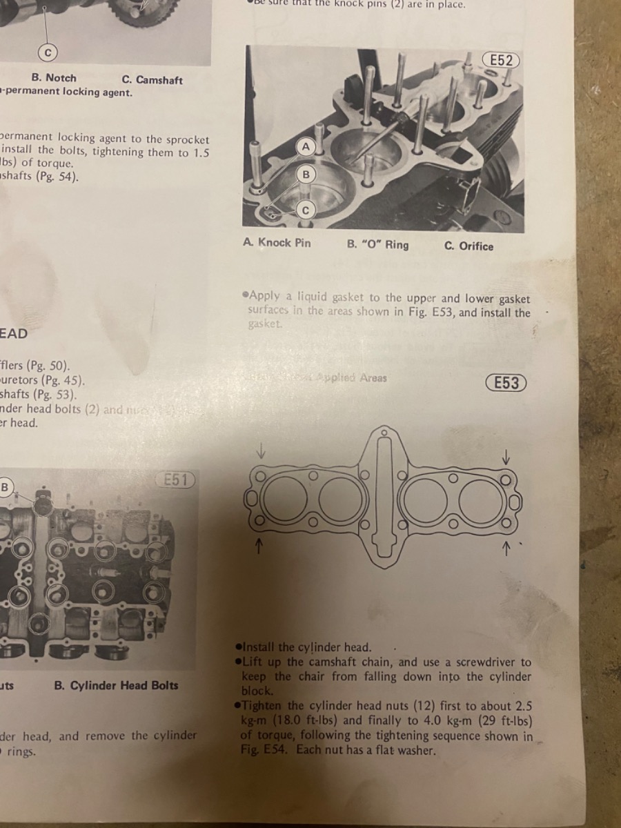 I am using the KZ750 service manual. Here are pictures showing where it says to apply gasket maker to the head gasket, and the front cover of the book.