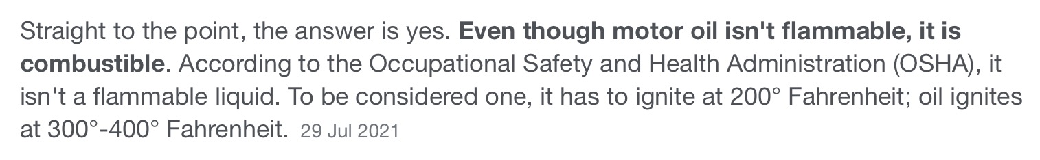 Also been riding and had oil leaking from head/barrel onto my pants... Only time I ever had a fire was electrical in the headlamp shell from chaffing wires, pulled over and shut it off.
