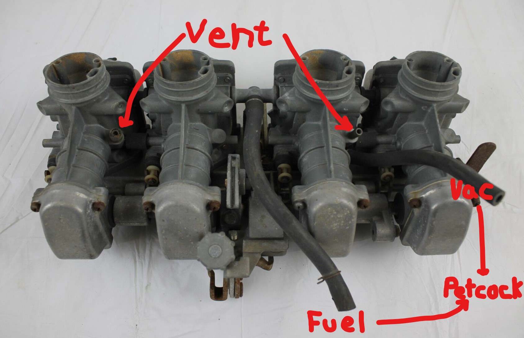 05 Nov 2022 06:43That would definately explain the thread titleNot possible. This bike would have never run. Your only feeding fuel to two of four carbs. Needs to be another fuel line feeding the tee between 1&2 carbs. Post a picture of fuel line routing.mine has a fuel filter between the single line from the tank to where it connects to carbs 3&4. thats the only fuel line from the tank. There arent two.With today's gasoline you need to start the motor once a week to avoid plugging jets (KZ650 with 750 motor/CVK34 carbs) a fuel filter from the tank to the carbs is a big help.