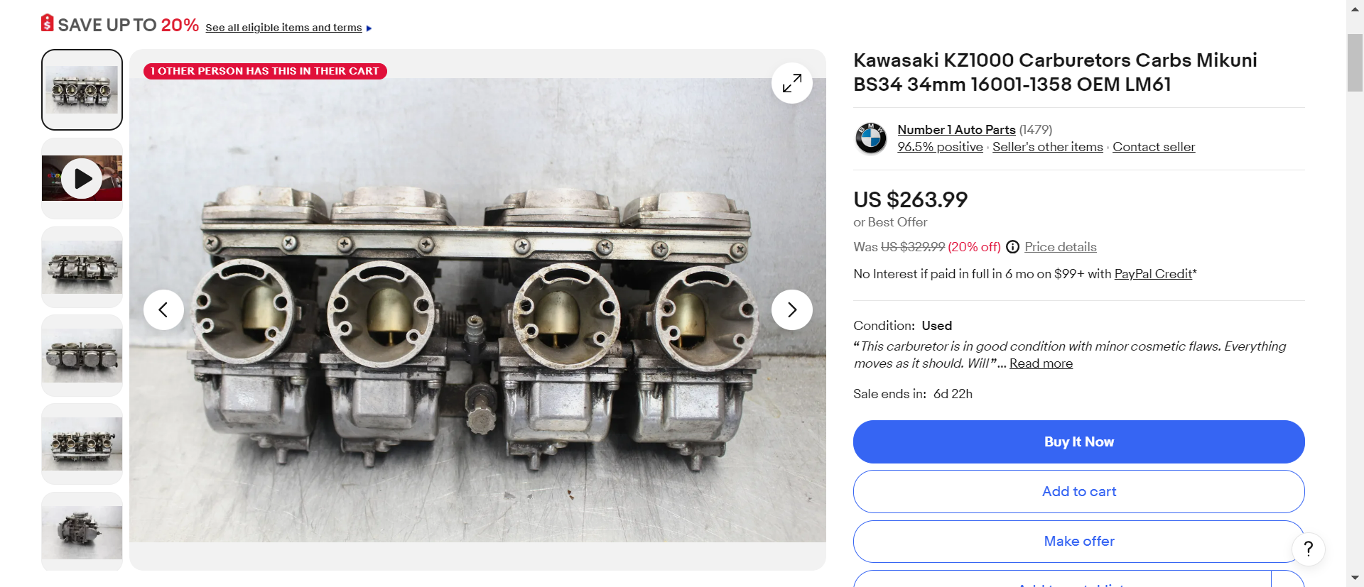 Wookie, German carbs are totally different. I’ve now located a set that is missing some parts that I already have (floats, bowls), so it should be cheap. Let’s see.