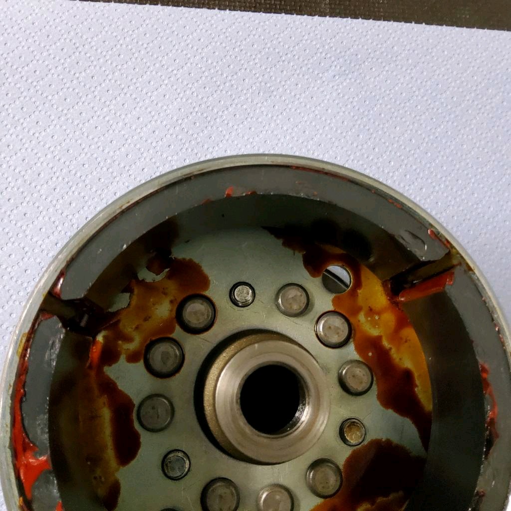 After reassembling everything and waiting for 24 hours for the sealant to do its job, I tried to start the engine, only to be greeted with a lod screeching noise. All off again; and one of the rotor magnets had broken. What a disaster, I thought. This is the one I bought second hand (as my original rotor had a broken magnet too).