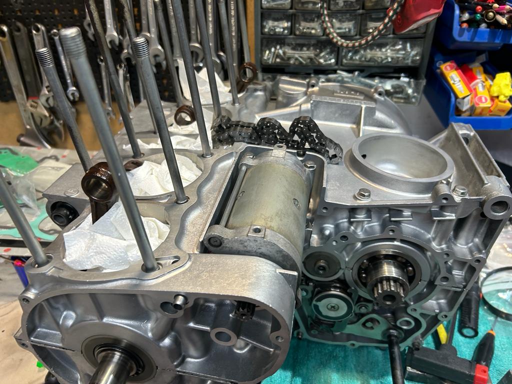 So, as I move on; engine is now "closed", and everything looks neat. New large bolts, and reused all the rest. No threads were damaged in the process... so we are ready to install the pistons now.