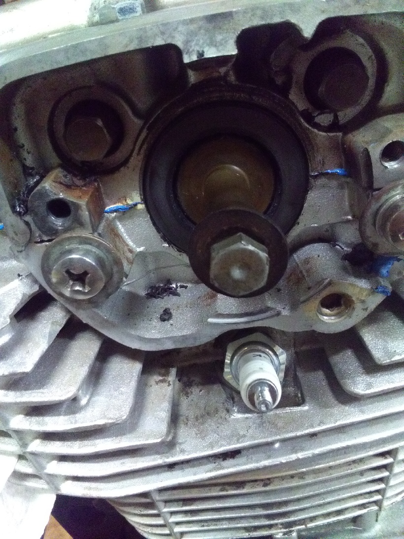 Took the carbs out but not before discovering I hadn't drained the bowls last time I ran it, argghhh. Add "clean carbs, again" to the to-do list despite having cleaned them less than 15 miles ago. Got the exhaust off and plugged the orifices because I may be taking off for a month or so before I can get any deeper. Need to decide if I should just use the felpro gaskets that are left over from my rebuild 2 years ago, or bite the bullet and get Kawasaki.