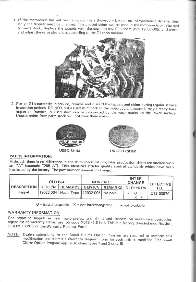 Mama Kaw issued a recall (Svc. Bulletin SER 73 Z-13, dated 6-21-73) to replace the early Z1 shim buckets with correctly-machined items (PN# 12032-005) sans the 'navel'. See below.