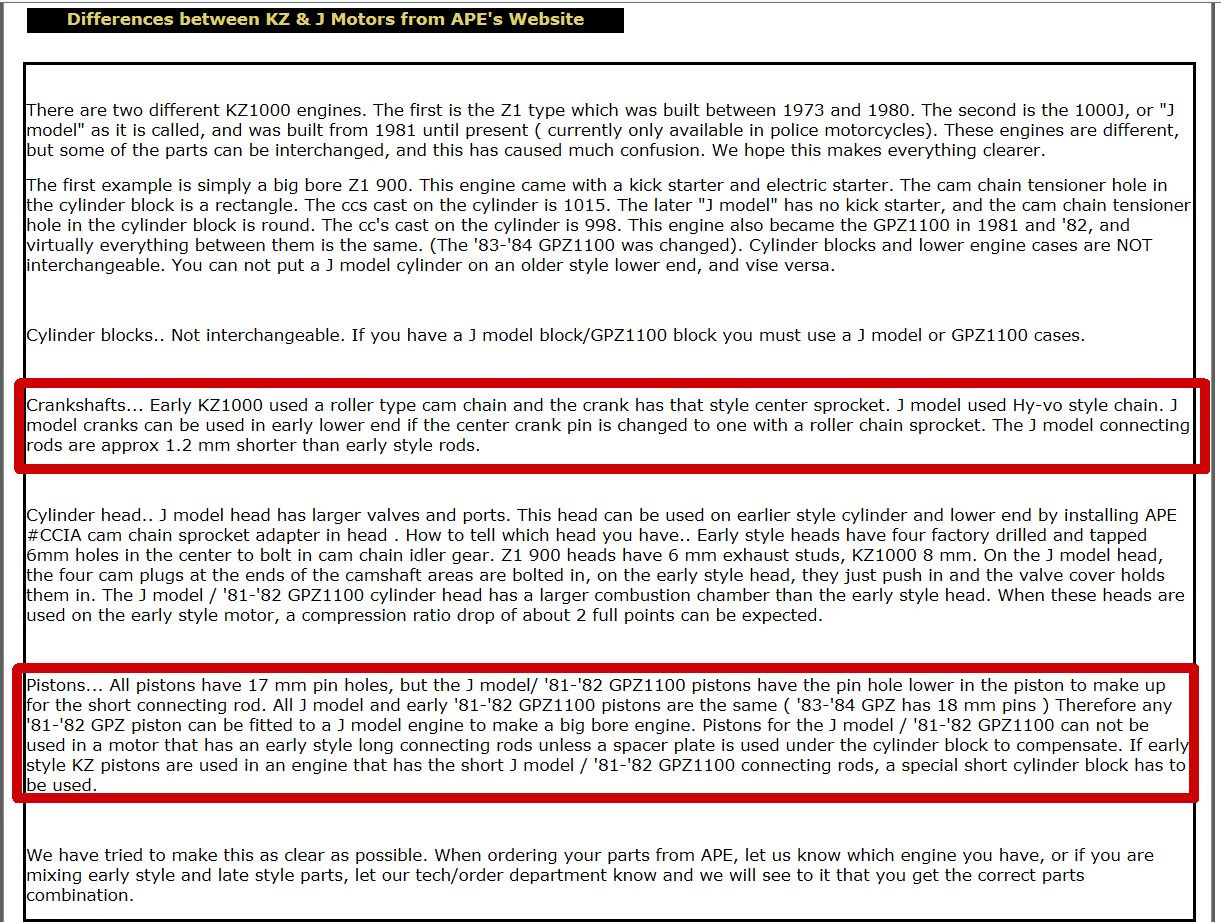 A KZ1000J engine has 998 ccm: 69,4 mm bore and 70 mm lift but 1,2 mm shorter rods (piston to small end rod pin position 1,2 mm lower).