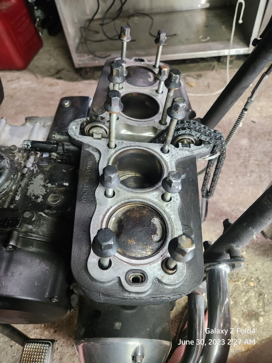 So i got the valves lapped and the head installed and i did the timing and checked it 4 times and this time i am confident that i did it right. There is very little resistance with the plugs out and when rotated 2 rotations from 1-4 tdc all the marks still line up. Then i redid the valve clearances. I had to change a couple shims and now all clearances are in spec. Then i did a compression check. This was done with the carbs and exhaust off the bike. All 4 cylinders are at 120psi cold without the carbs and exhaust installed. Everything is looking up for my precious kz650.