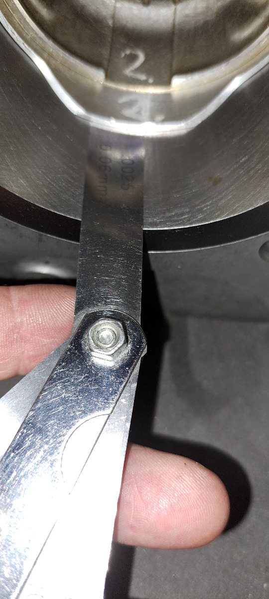 With feelerblades i could not slide in a .060mm feelerblade into cyl 1 that is .055mm it got stuck same was for the other cylinders a .060 feelerblade had a tight slide fit. and can now confirm that the measure with feelerblade is not divided by 2.