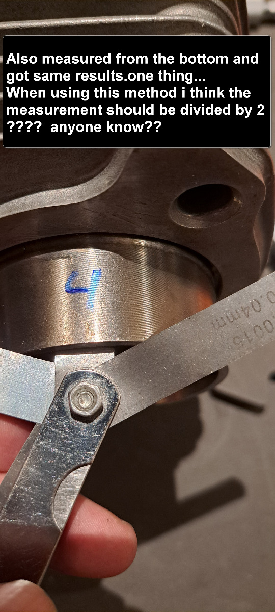 I also tested more for fun with the feeler blades method and it is infact quite acurate ,but i think then the bores have to be straight not eggshaped and tapered.