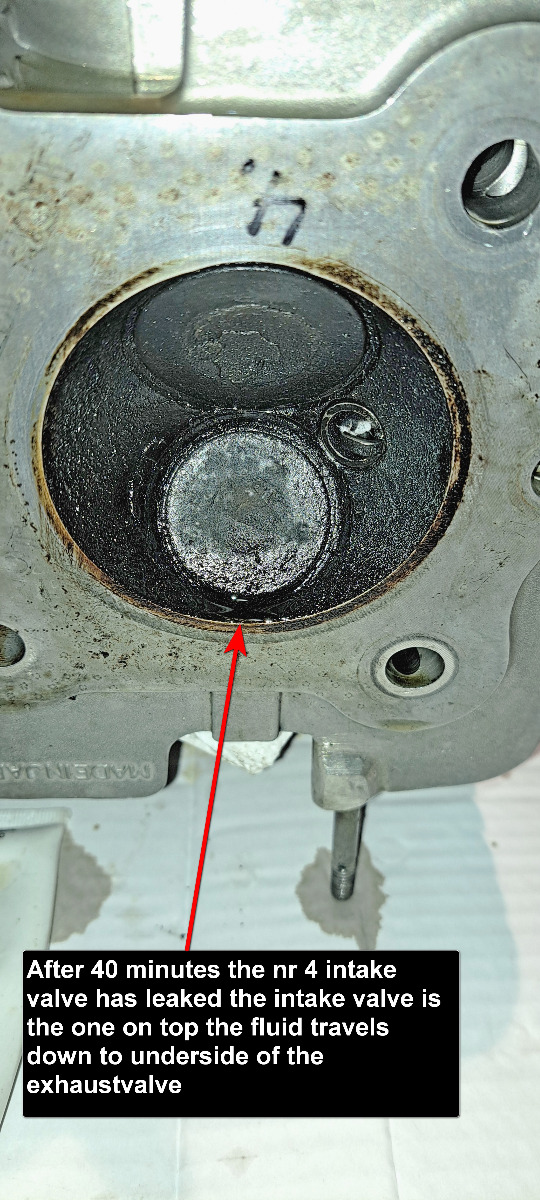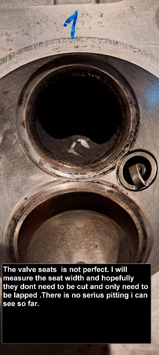 The valves was very good only nr 4 intake had a small leak and some had a little sveating, but that is good after 40 minutes of standing filled with solvent. I will next take them out and just check if the valve seat and valve face width is in spec.if not i will cut the seats.Also will check the valvestem for runout and if the valveguide is in spec.