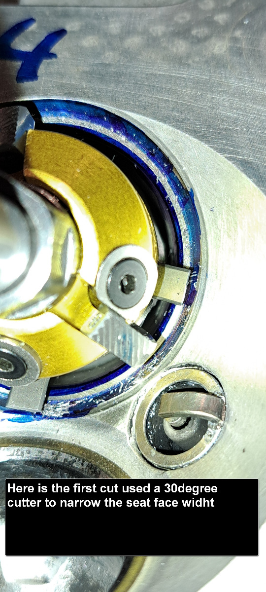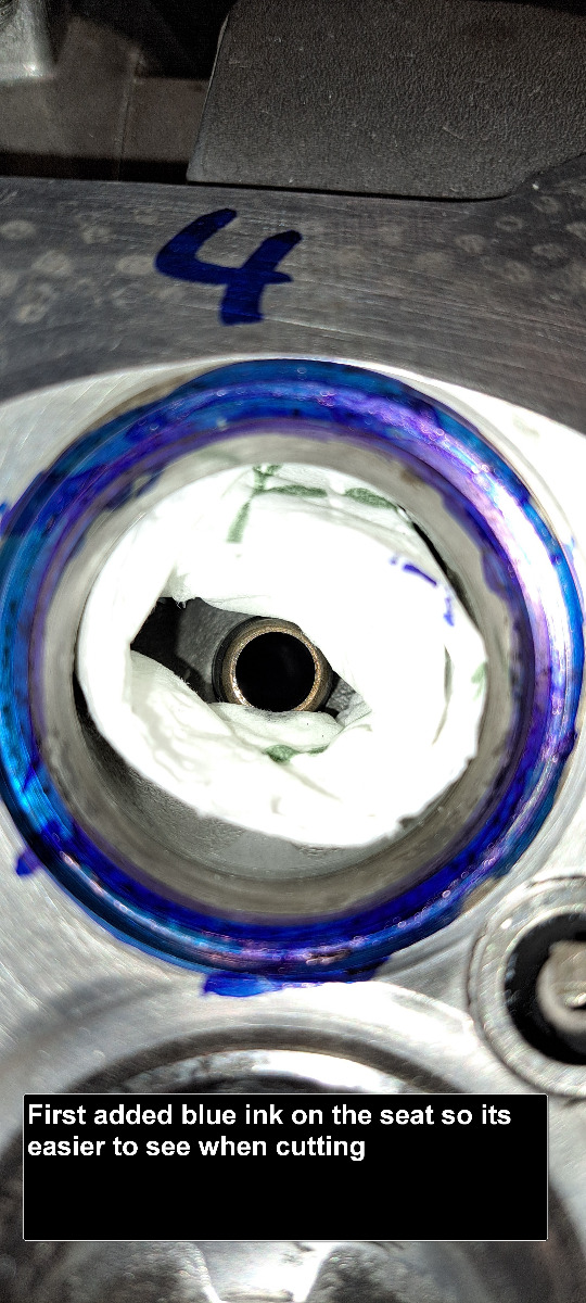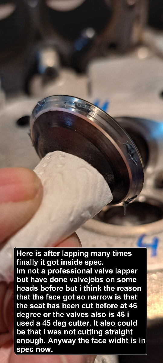 Been doing some more on the head .The valveseats was worce than i first thaught so had to cut them so far only done intake 1 and 4. Also done some more measurements and it looks promising .I thaugt the inner diameter of the valveguide was out of spec after the wobbletest of the valves ,but after using a boreguide in them theuy are all inside spec so will not replace the valveguides. The cylinderbores has some skratches but will post about that later.