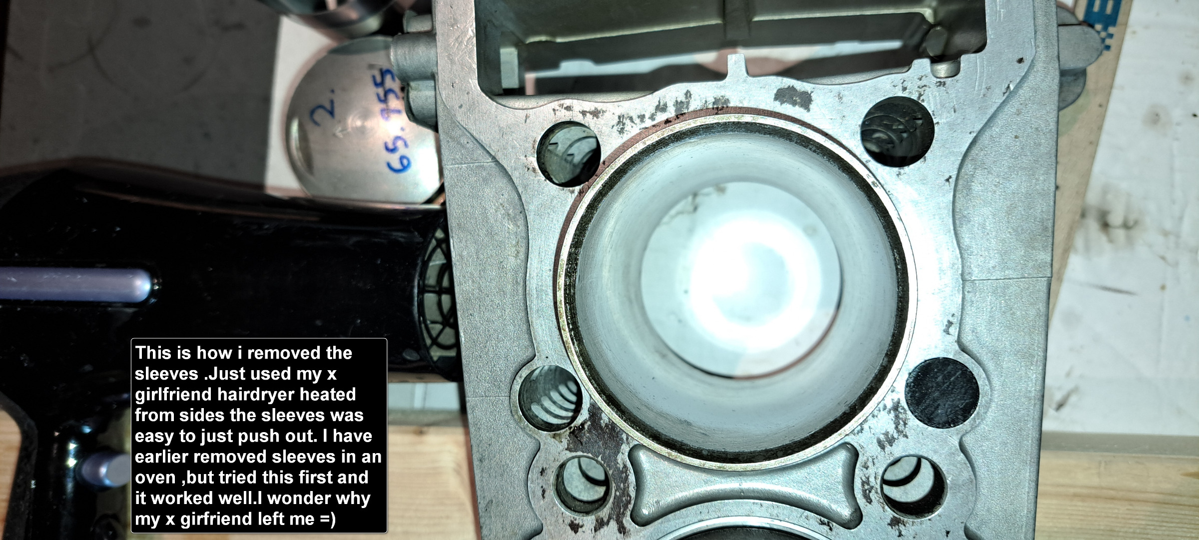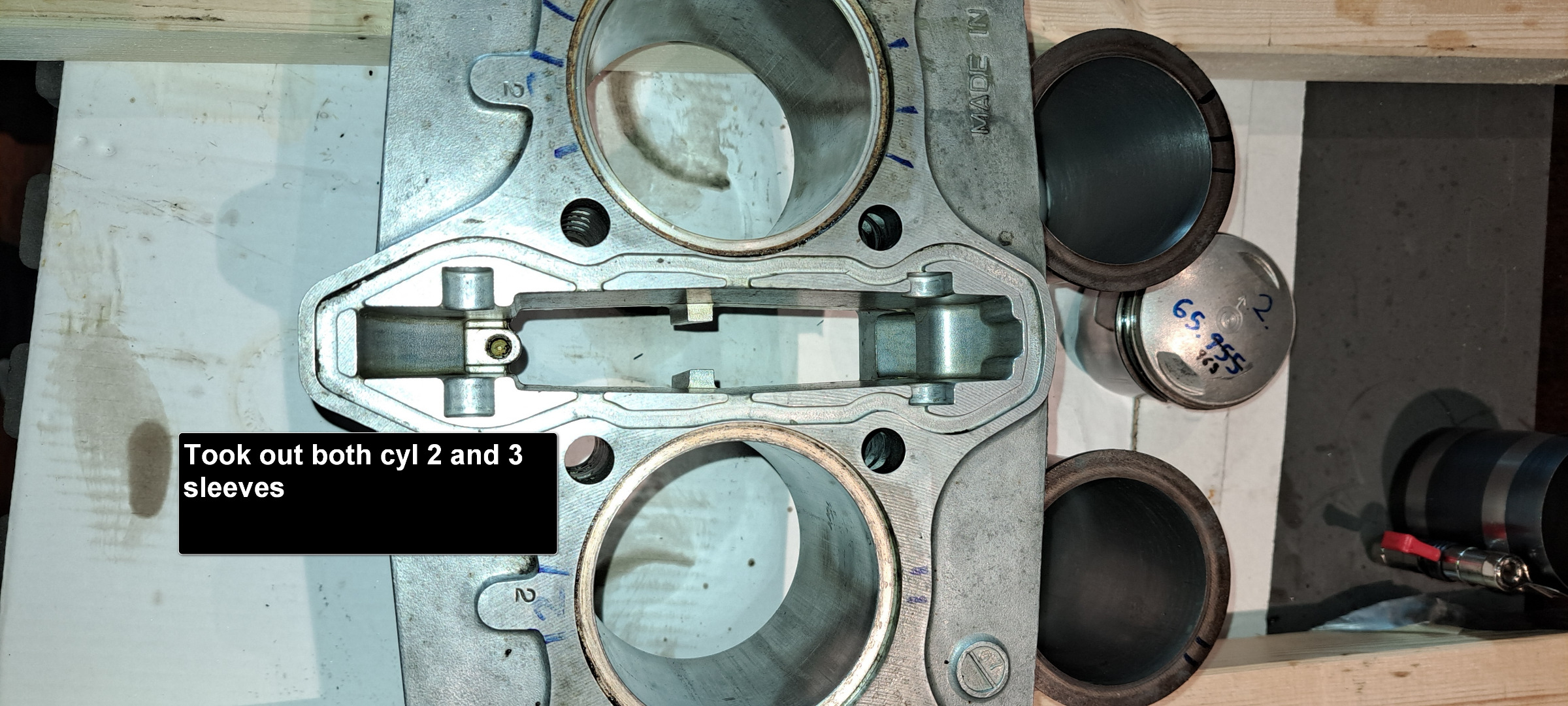 to piston clearance spec.Then i desided to take the sleeves out to be 100% sure they are not cracked.