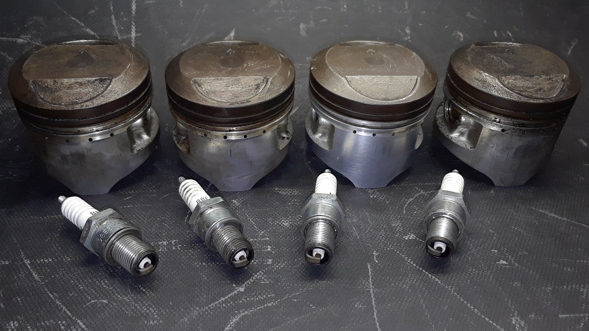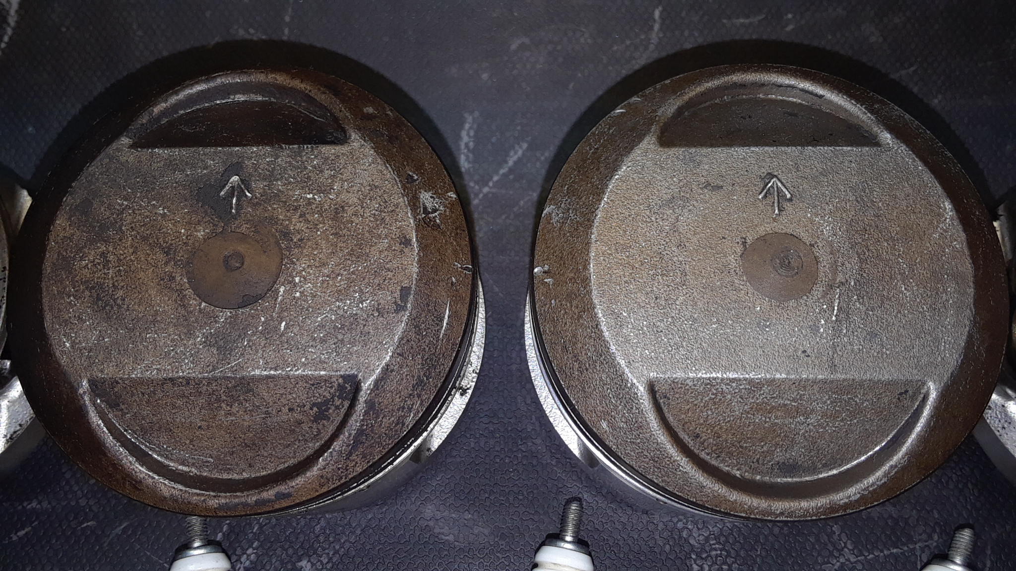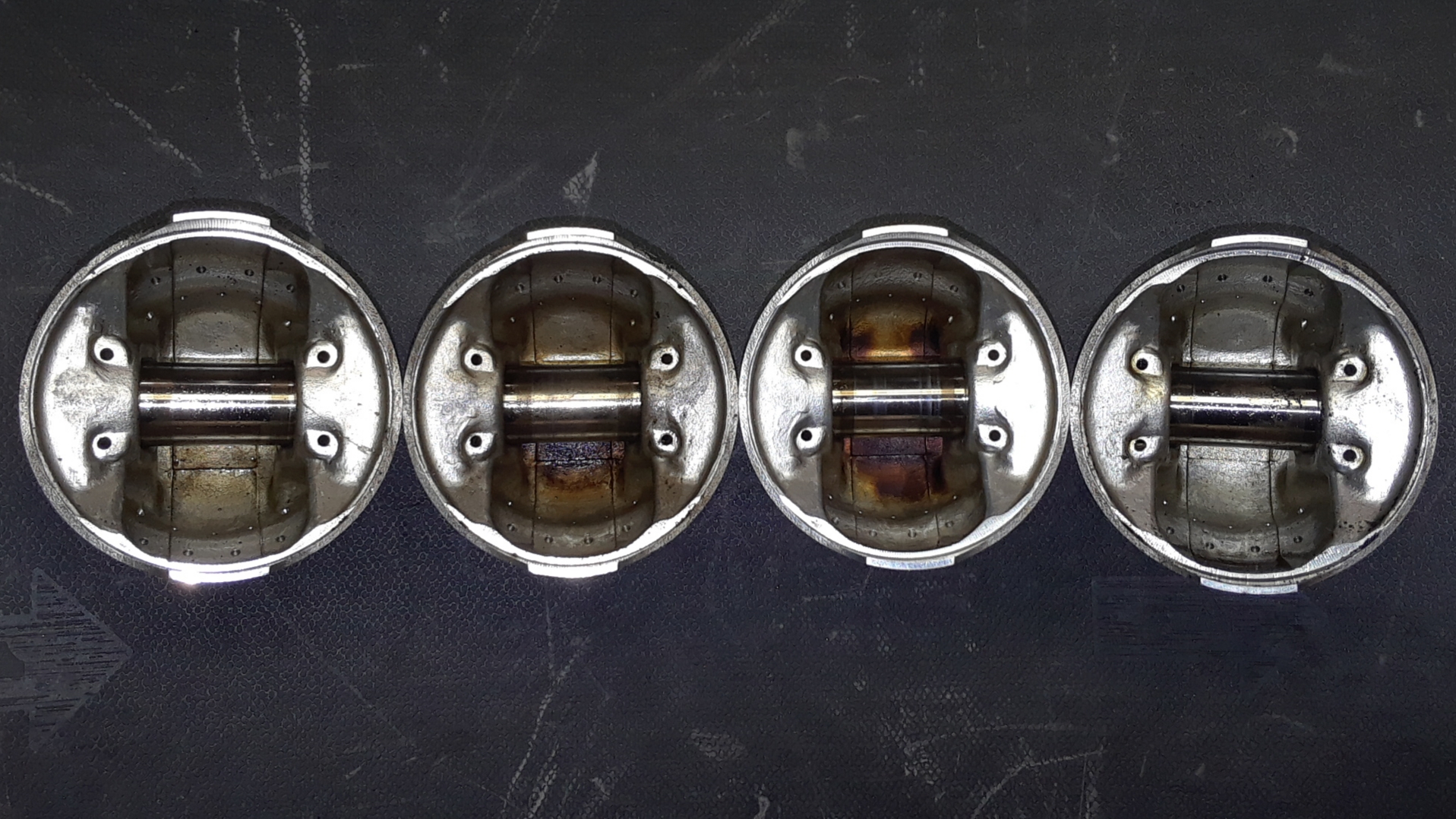 Apparent heat damage shows on both #2 and #3 pistons