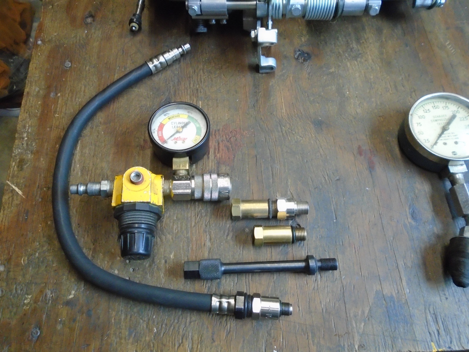 Before leak testing ensure the bike is in gear, the rear wheel is clear of the ground and the rear brake is jammed on (the motor can try and turn when air pressure is applied to the piston and if in gear it can kick it off the stand)