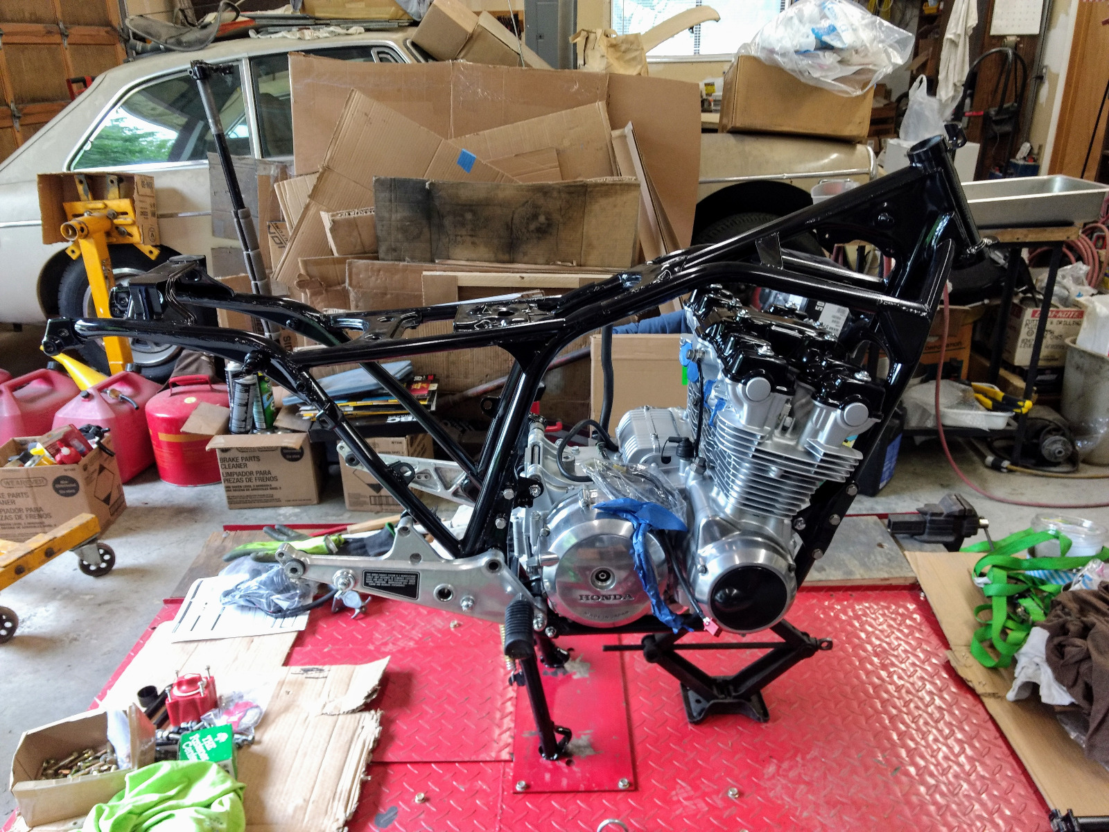 One question comes to mind: Apart from the center stand (which is a fantastic idea), are there any other parts that are worth your while installing BEFORE getting the engine in?