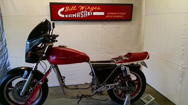 More than a few years ago I bought Bill Wirges' last project bike, a Kawasaki chassis. He was quite old and ailing with health issues and it was hard to communicate. I bought the bike and some other stuff from him (missed the Bonneville streamliner) and brought it home. My plan is to make a plan and finish it next Winter. I have a 1975 Z1 engine.