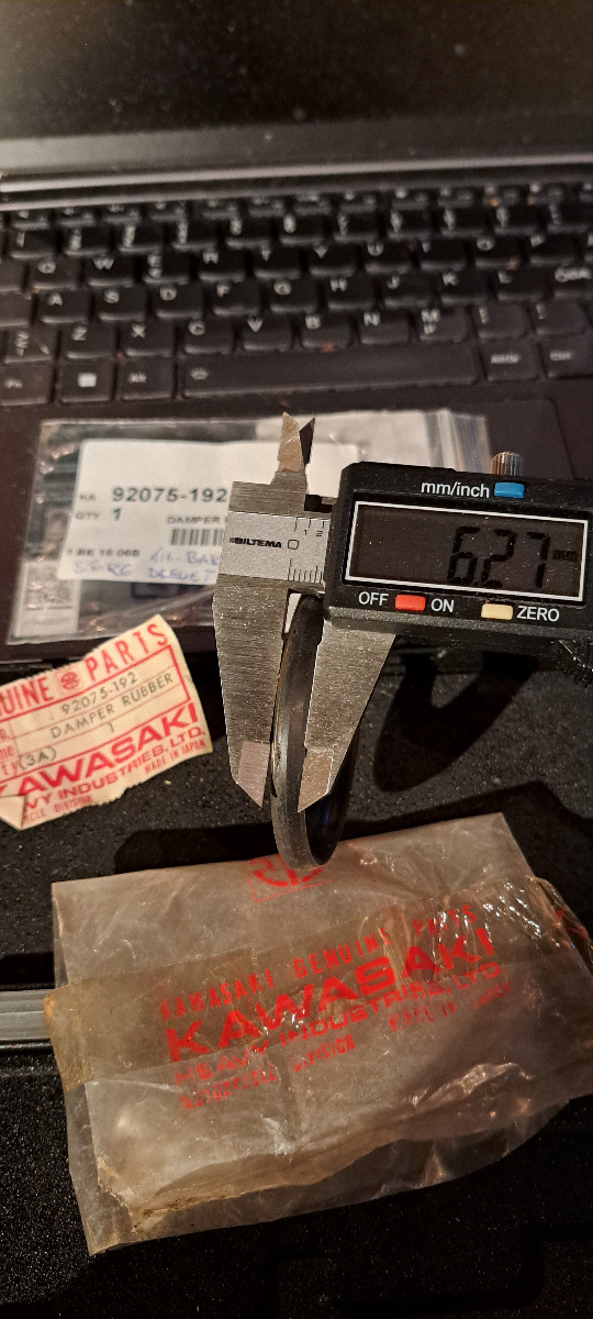 After reviewing all the available info I decided to use one of the used 8.3 units I have on hand since it look's like the 7.3 damper will be hard to find. It was a bit squished in the first place and was close to the thickness I needed. After a slight rub on emery it fit nice and keeps the gear from rocking and has minimal pressure against the outer wear ring which is exactly what is needed. 10 months ago I was able to find all of the three dampers for another 73 Z1 I was working on but now no luck. At least I have several new 8.3 and one 6.3 dampers for future projects. The best time to fit these dampers is when you have the cases split. I use the small one first and see how much play I need to take up. It's hard to measure that play with the cases together and you're kinda just guessing. Im aware of those changes on the early z1's. The engine I inherited with the purchase of a 74 Z1 is unknown but I think its from a KZ900.
