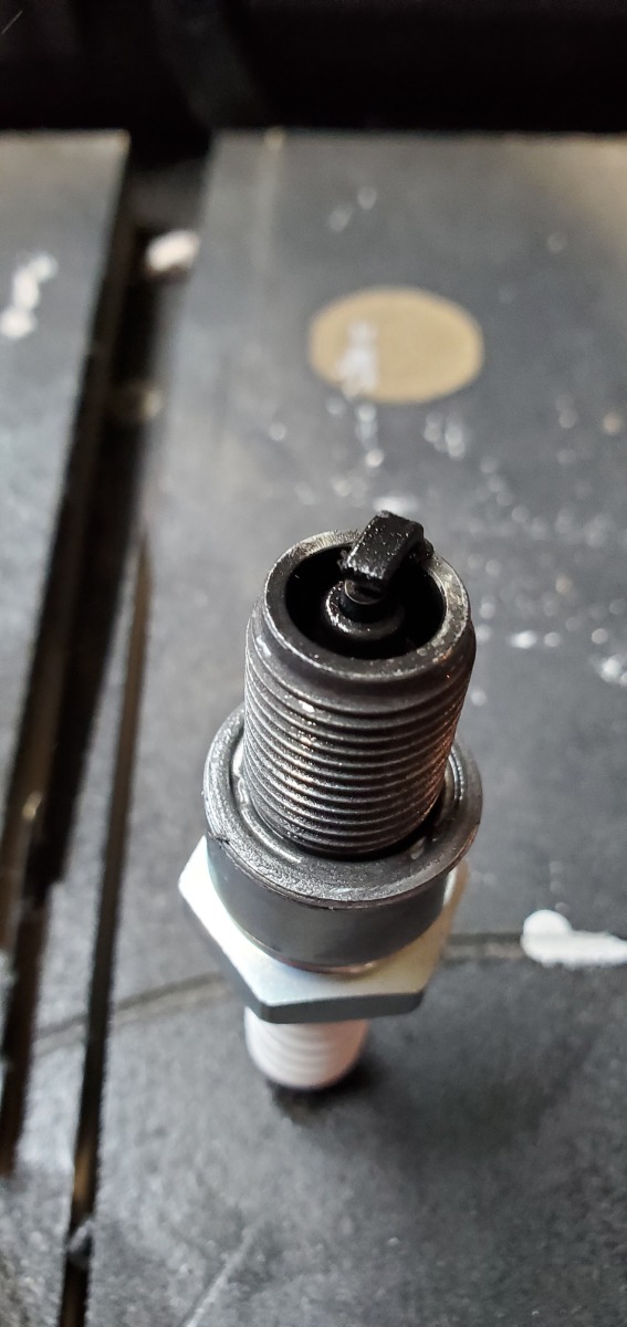 Since I got the carbs sorted out, it's now blue and the plug has no smell of fuel, just oily.