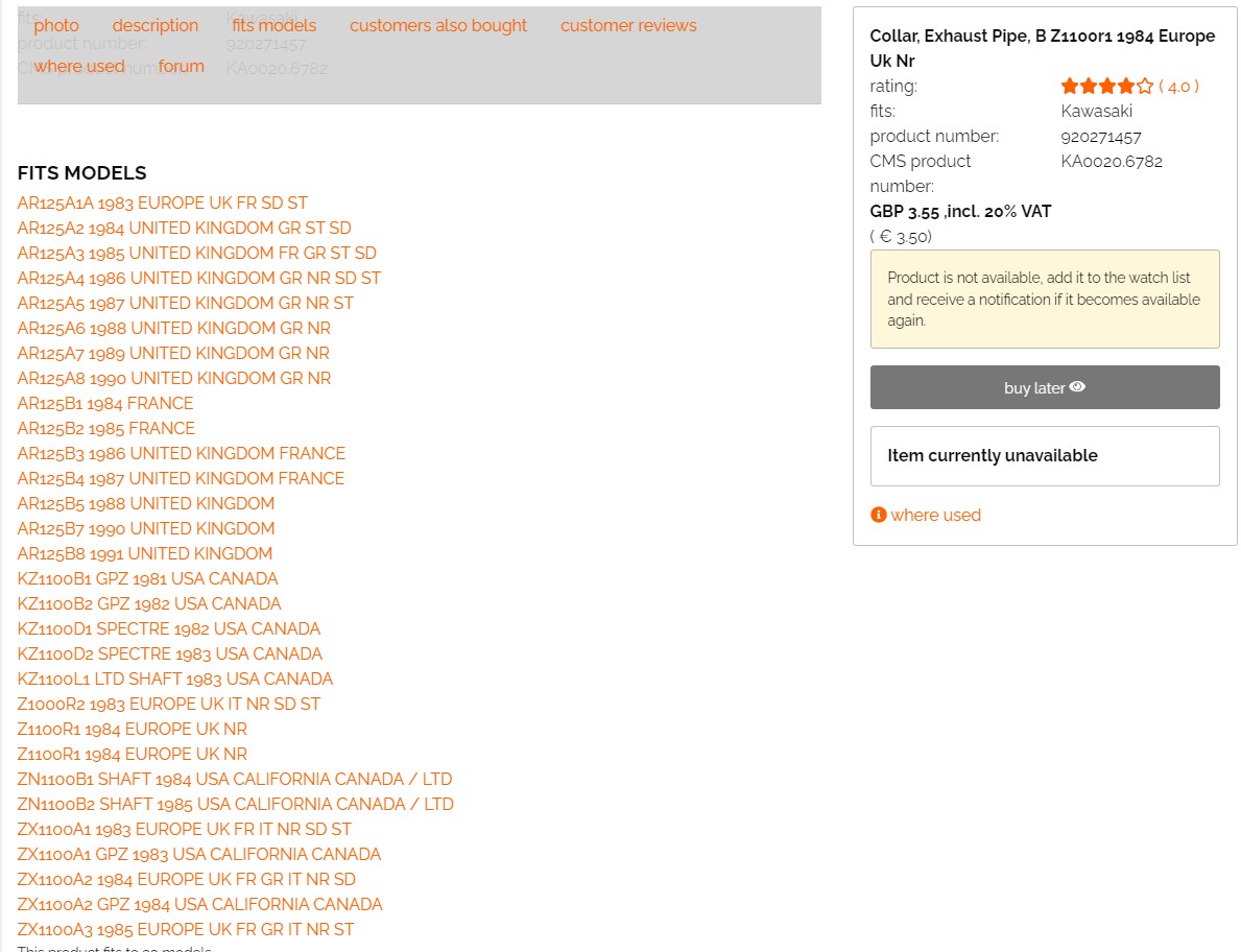 have a few (3 to be exact) 1983 & 1984 GPz1100 bikes. I’m having a hard time finding the exhaust collars. Part number 92027-1447. The last couple of orders I have received have both been too shallow and won’t push the header all the way in.