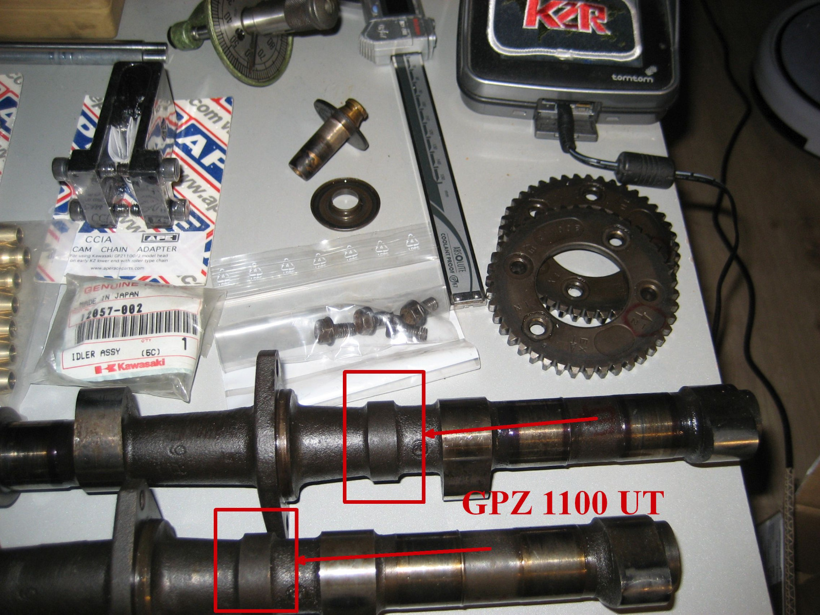 I Have a 1977 kz 1000 1197cc turbo engine with 83 gpz1100 camshafts. They have the ape racing slotted gears on camshafts. My question is how to adjust valve clearance. There are no marks on the gears to line up with cylinder head. Any help appreciated.
