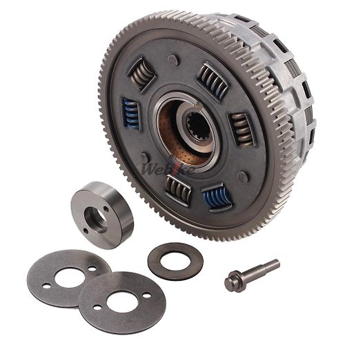 The clutch also has largish removable bearing center behind the hub which when withdrawn allows the basket to be dropped to one side out of engagement with the crank and then lifted out of the cases.