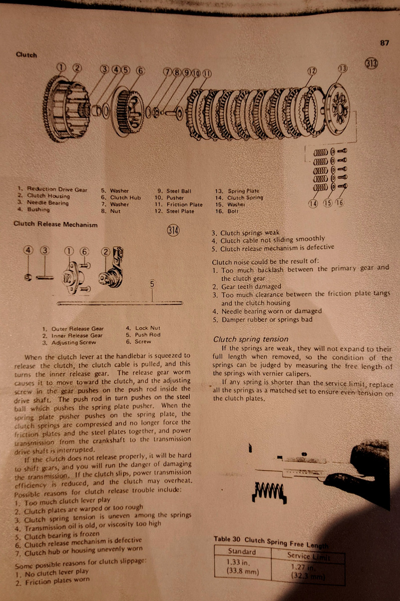 if you dont have a manual i post 2 picks how to measure the disks and springs for service limit. It is from 1976 kz900a4 manual but i think the kz1000 has the same clutch