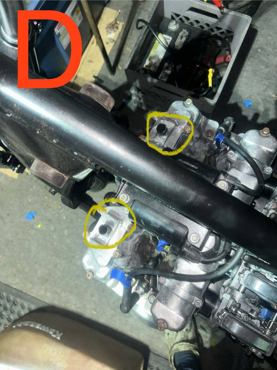 11 Feb 2025 00:1582 kz 550 that I got with no air box. I plan on going with pod filters amongst all the turmoil that says to stick with the stock air box. So, here's all my questions I'm struggling to find definite answers to. The link below should hopefully open to pictures of what I'm dealing with. Anyways, I have a petcock on the tank with no vacuum nipple . Fuel on/off, let gravity do its work. 1) Will this set up work, and if so, would I just put a cap on the nipple on carb 4? Yes 2) the crankcase breather at the rear of the engine should be left vented with a breather filter or hose (or both for that matter). Is this correct? Yes 3) All four of the carb boots have nipples. It is to my understanding that these are used to vacuum sync the carbs. However these can be capped. Is this correct) Yes . And lastly, the valve cover... from my research these are for Kawasaki's emissions system. Can those lines be capped off? If so I could just cap them off right at the valve cover, correct? In the event the link works the pictures are labeled as follows: There are several posts on here ref blocking off the emission valve and how to go about it. You will also likely need "air corrector" jets which member Zed1015 can supply.