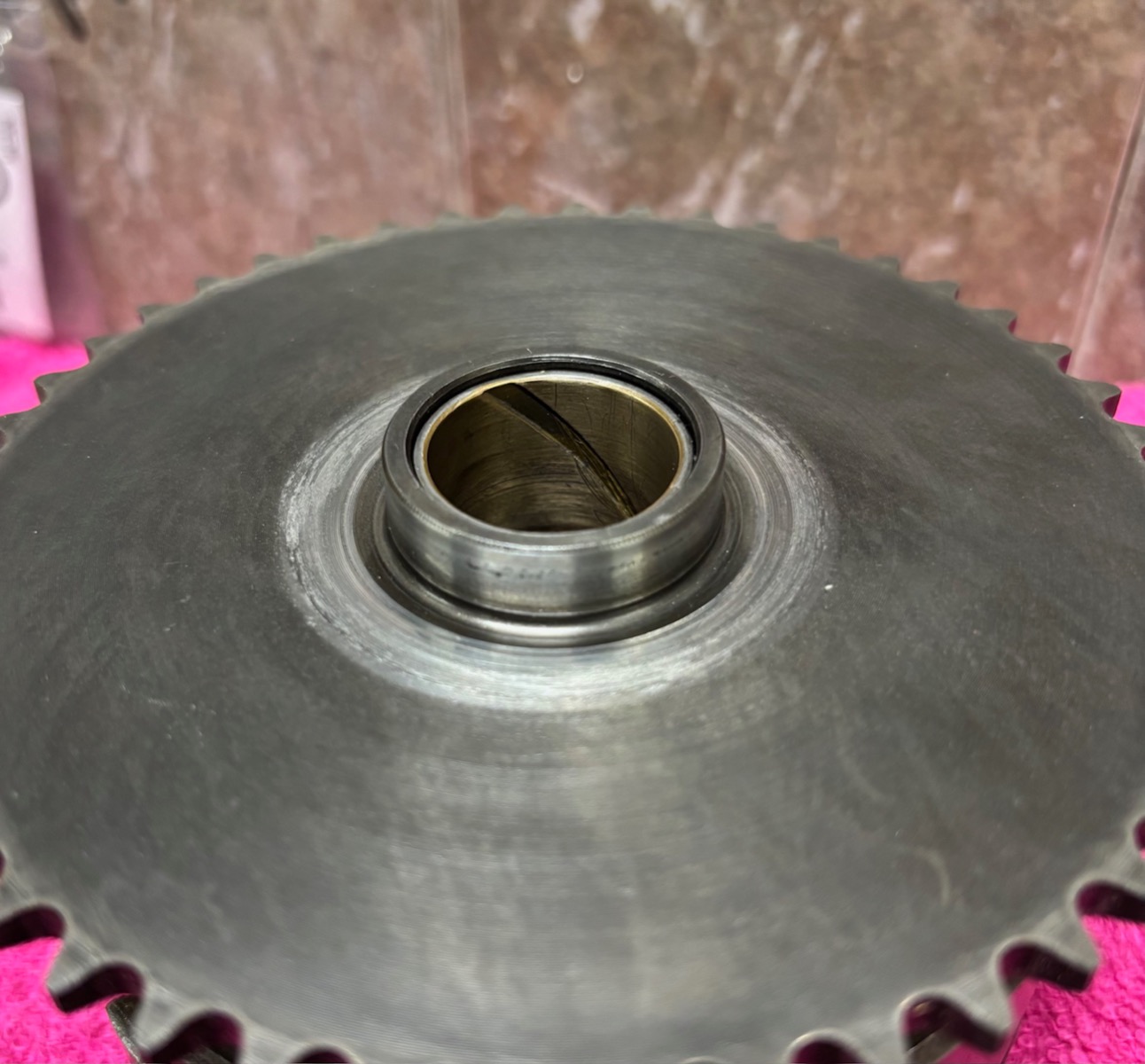 Good evening all. Anyone have an idea why the starter sprocket is wearing up against the case like this? Thanks!