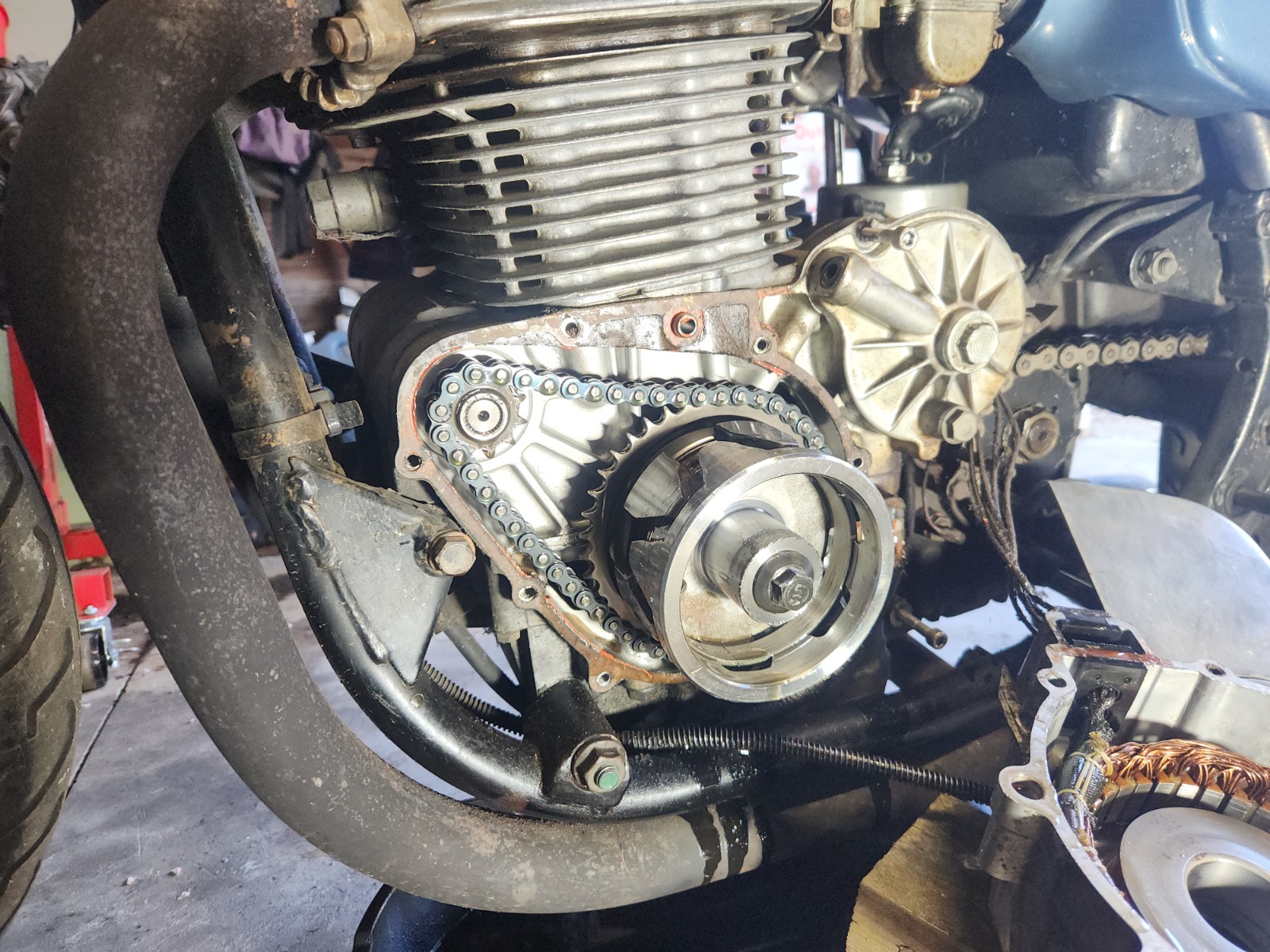 when I bought the bike the seller stated the electric start didn't work due to a missing chain. I'm betting that's only a half truth, I suspect the starter clutch locked up and they removed the chain instead of just repairing the clutch.