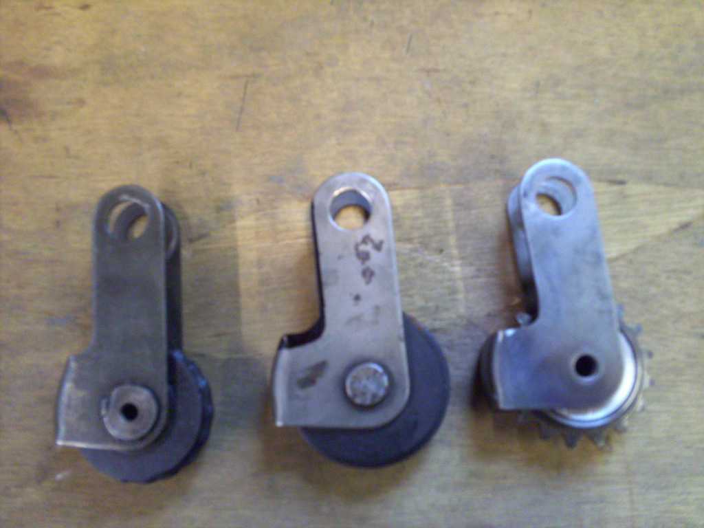 The upper idler wheel and bracket, i´ve repaired and renewed a lot: Drilling out carefully the welding on one side, with an eye of drill away not too much, than with an new, or renewed wheel, fixed them, and secured it with a new weld point, ( with the original axle sitting right in the bracket,..there is a little recess in the axle, that MUST match the opposide side steel wall!)