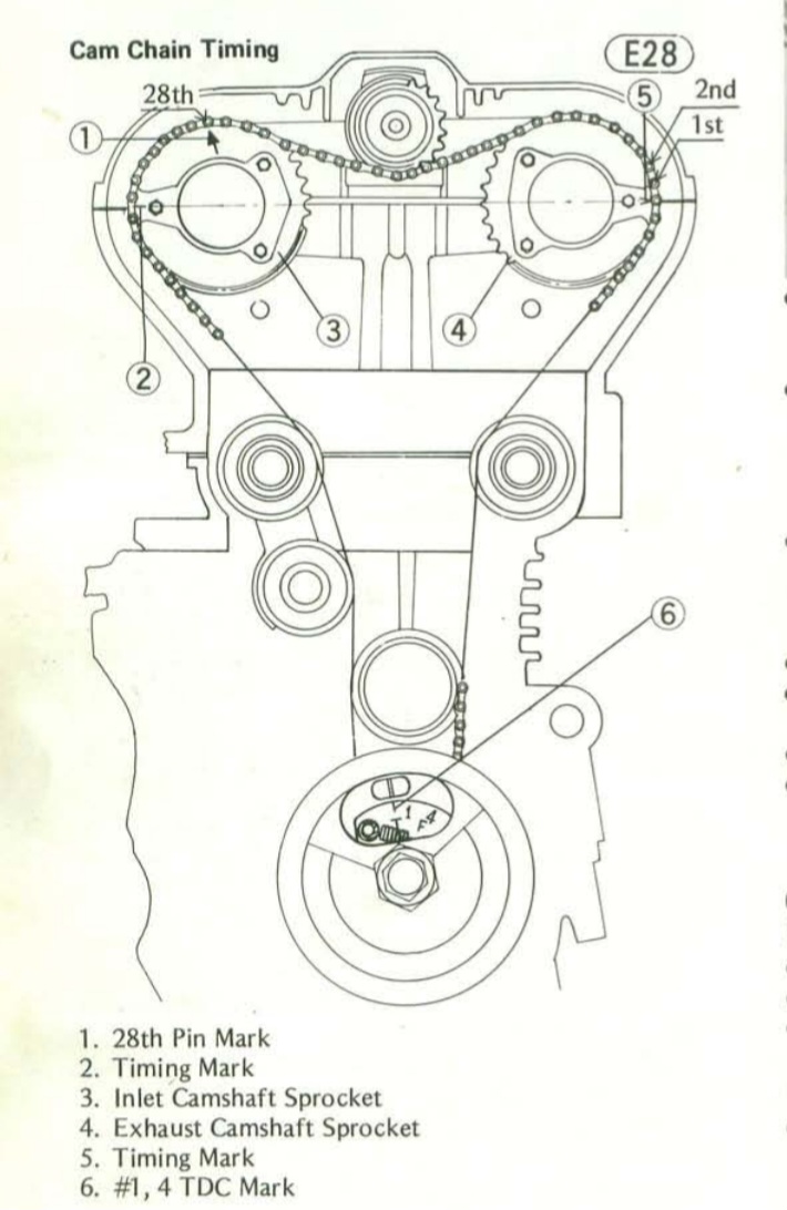 1&4 on TDC, Pin 0 on front at the mark, pin 28 on the chain.