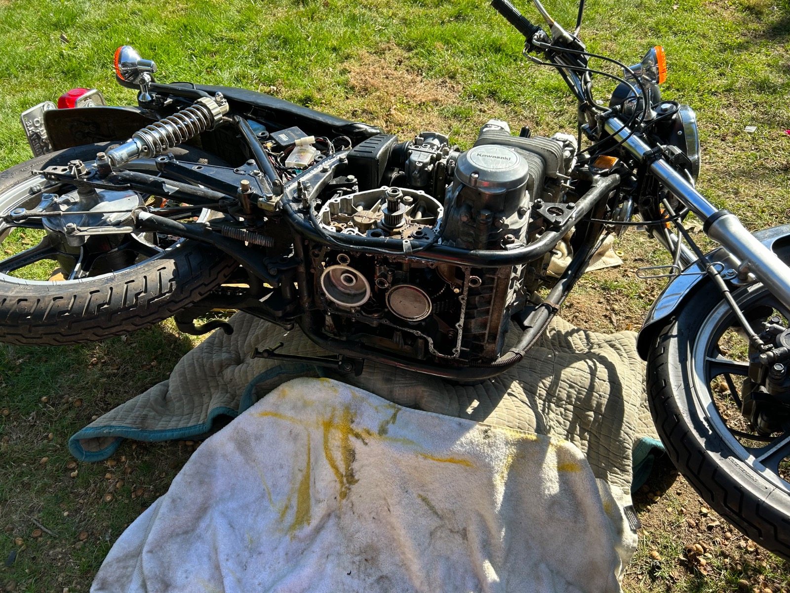 PS: The bike came without an airbox. Could not find the GPz box so I bought an 82 KZ750 airbox. It fits, you can see it in this pic.