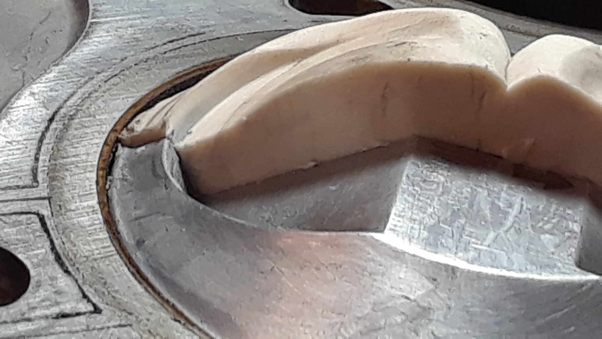 Based on these piston-clay impressions, what additional valve clearance needs to be provided?