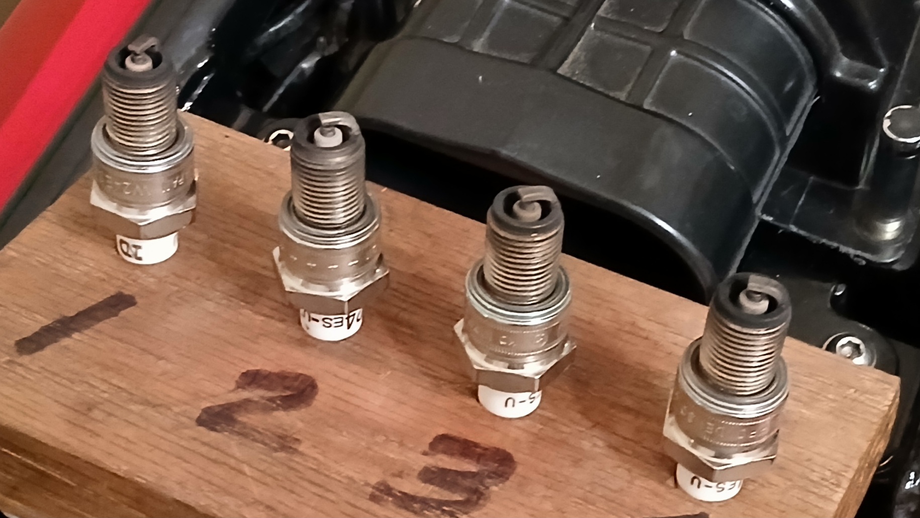 Before the ride I changed the spark plugs from Denso W27ES-U to W24ES-U (hotter!).