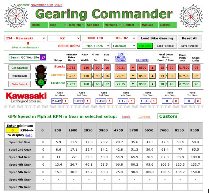 24 Nov 2025 08:10Sounds about right (the calculator will confirm) I am running (when it's finished) 18 - 46 on my 82 Ltd but that has 17inch zx9r/Bandit 600 wheelsThanks! I was thinking of going 18 in front and 44 in rear which would drop my rpm by 200 at 70mph. I don't want anything to crazy so I'm keeping the front sprocket the same diameter. Please let me know if there is anything to be wary of concerning the sprockets.