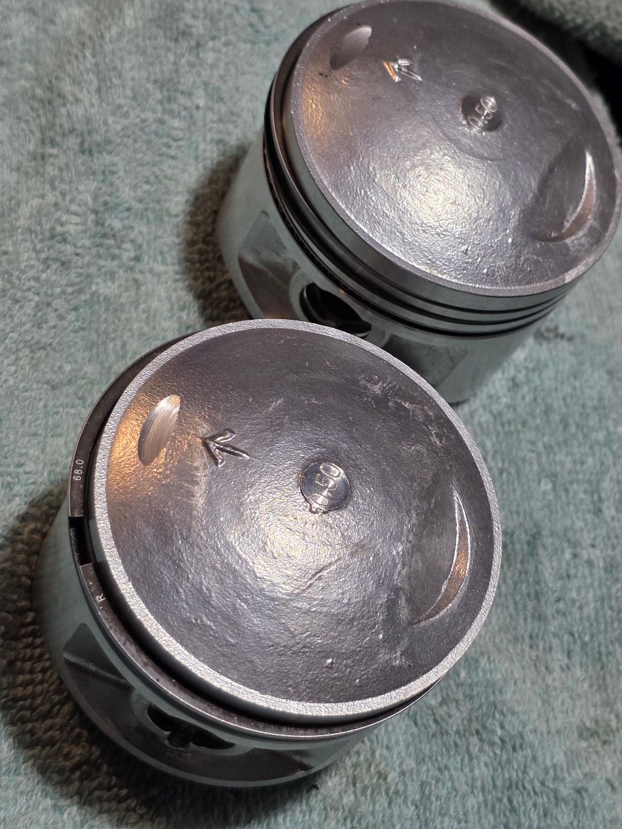 The 440 cylinders had some corrosion that honing couldn't fix so I had the machine shop bore it out 0.5mm to 68mm. Brand new 0.5mm oversize pistons from IMD with rings and wrist pins were easy enough to find. 1.0mm os is also available shipped from Japan. This was more than I originally wanted to do but not a big surprise with old used parts. Some numbers if you're curious: